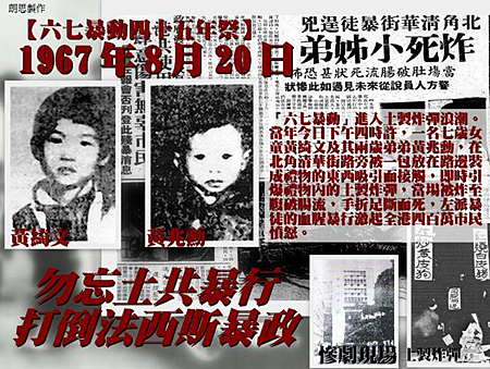 1967年8月20日,一對小姊弟被土製炸彈炸死