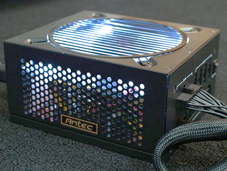 Antec EDGE 電源供應器造型設計上確有新鮮感,兩側的外殼加入大量開孔,配合 LED 風扇燈光效果,以及側透機箱的透光,令電腦平台更加美觀。加入吸震膠圈是市場上比較少見,除了以溫度控制風扇轉速,減輕震動之外,以膠圈作為隔震物料確是一個創意設計。