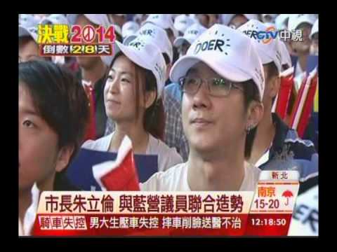 (中視新聞/ettoday)國民黨新北市長候選人朱立倫行程馬不停蹄,上午競選總部成立後立刻趕到新莊體育場參加國民黨議員候選人聯合大型造勢活動炒熱選情。新北市長朱立倫競選連任,1日上午在新莊體育館舉辦「新北大步向前行」聯合競選造勢大會,場內8000座位已全數坐滿,但現場場外還持續湧入大量人潮,有的甚至還從馬祖遠道而來,預估現場有望破萬名支持群眾,氣氛十分熱鬧。「新北市需要什麼樣子的人?做事的人!」有別於造勢場合政治天王輪番站台加持的慣例,朱立倫特別邀請近30名「素人」市民相挺,分享市政的改變與期望,並分別送給候選人一句祝福話,予以鼓勵。為加強維安,不僅請新北市警犬隊進行場檢,新莊警方也在旁嚴陣以待。朱立倫身著休閒衣衫、長褲及鞋子,頭戴耳麥,娓娓地的述說細數了新北市4年來取得全國277項全國第一的政績,背景電視牆也配合秀出平溪天燈、歡樂耶誕城、萬里蟹、新月橋等成功的城市觀光行銷,以及公共托育、托老中心、銀髮共餐、國民運動中心、污水下水道等政策與建設的畫面,讓大家更深刻理解過去4年新北市在各方面的蛻變與成長。整個台上演講過程,舉手投足都讓人有如置身在美「愛瘋」新品發表會上的錯覺。接下來是29區市議員候選人分區上台造勢,朱立倫也授旗給後援會總會長陳幸進及競選總部主委林豐正,代表各後援會與29區競選總部團結衝刺選票,宣示「市長凍蒜、議會要過半」的決心。