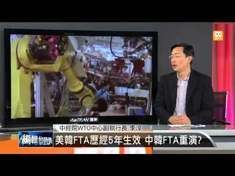 (聯合影音網《編輯台時間》2014年11月10日)陸韓FTA洽簽的速度超快,甚至比各界原先預估的"年底之前、最慢明年初更快,在APEC期間突然上演,習近平與朴槿惠握手宣布的這一幕,對服貿貨貿都進展緩慢的台灣而言很震撼。選在這個時機中方打的是什麼算盤?是否有政治考量?以兩岸而言,是否有故意加速與韓國談判、對台灣施以壓力,以表達對我方無法通過貨貿、服貿的不滿?有了陸韓FTA,再加上美韓FTA,韓國出口將如虎添雙翼,GDP預估成長超過1%;除了優勢之外,對其國內的衝擊有多大?陸韓FTA雖然實質談判結束了,但要經過草簽、正式簽署、兩國國內的批准程序後才算正式生效。其中最關鍵的是,韓國國會是否會及時處理和批准陸韓FTA的議案。因為2007年美韓雖然締結FTA,但兩國都出現反對聲浪,直到2012年3月才生效,這次會再重演嗎?韓國FTA貿易覆蓋率上看80%,台灣則不到10%,經濟部預估台灣GDP將因此減少0.5%,這些衝擊會如何具體出現?我方現在如何因應?經濟部長杜紫軍曾說不能簽得早,就力求簽得好;請問在內部政治壓力之下,如何可能在接下來的談判中,要求大陸市場開放程度必須優於韓國?是否國內仍無法認清現實?對企業界而言,少了立足點的公平,現在如何搶市場、保訂單、力挽狂瀾?