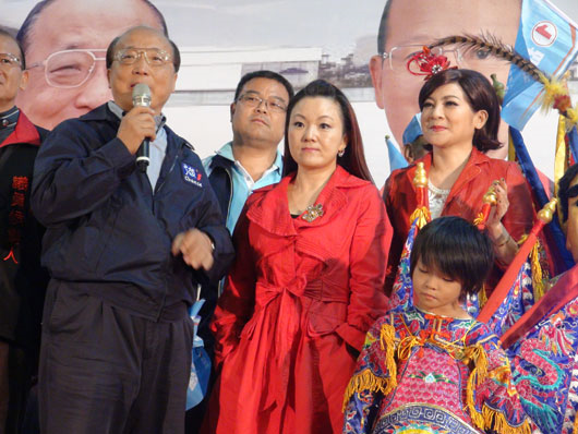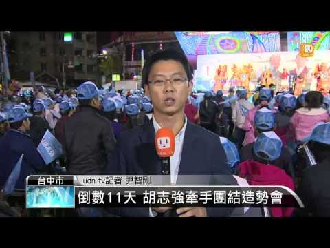 (聯合影音網/中央社)力求逆轉勝、成功連任的台中市長胡志強,今天晚上,到海線的清水區,舉辦造勢晚會,立刻連線現場udn tv記者尹智剛,告訴我們最新情形。台中市長胡志強今天晚上到清水區紫雲巖前廣場參加造勢晚會,藝人王彩樺也帶著三太子到場,並高唱「保庇」助陣。胡志強競選總部晚上在清水區紫雲巖前廣場舉行「台中心動 溫馨清水情」造勢晚會,前台中市議長張清堂、前台中縣長黃仲生、藝人王彩樺、夏禕等人都到場為尋求連任的胡志強站台。胡志強抵達現場後,先至紫雲巖參拜,緊接著在群眾簇擁下步入會場。支持者看見胡志強,紛紛搶著上前握手,並大喊「胡志強凍蒜」。王彩樺也帶著三太子高唱「保庇」,將現場群眾氣氛帶到最高點。「我做妳大哥20多年,有沒有做太久?」,胡志強開場先問王彩樺,他說,自己擔任新聞局長5年,是做最久的新聞局長,同時他也幽默地說,「我當我太太的老公也做很久,她也很滿意」。胡志強說,跟大家相處這麼久,就像一家人;身為台中市長,感到很光榮也很高興。他也呼籲在場民眾,「再給我4年,讓我們一起為清水的未來打拚」。