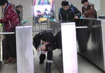 (華視新聞)有火車就有人逃票,上海地鐵當然也不例外,光是南京西路站的一個出口,一小時內就有28人,逃票或企圖逃票。究竟這些人是怎樣逃票的,會受到什麼懲處,一起來瞭解。一個地鐵站入口,出現了付錢和不付錢兩種進站方法,以正常姿勢走過去的,是乖乖付錢搭地鐵的人。而彎下腰鑽過閘門,或是往上跳越過閘門的,都是不付錢的逃票者。這對夫妻,真正是情到深處分不開,兩人竟然緊緊貼在一起,只刷一次卡就一起進了站,不過也是立刻就被發現。甚至年輕小姐等不及65歲,直接拿了老人卡搭免費車。逃票被抓到,理不直氣很壯的人,更是所在多有。去年上海地鐵逃票而被抓到的人次,超過九萬六千人,其他沒被抓到的,不知還有多少,地鐵部門因而損失超過千萬人民幣。為了不再姑息逃票者,當局決定除了罰款,還要祭出後果嚴重的懲罰手段。如果逃票被抓到而留下紀錄,那麼申請求學或就業貸款時,很可能不被批准,甚至影響報考公職人員時的綜合積分。