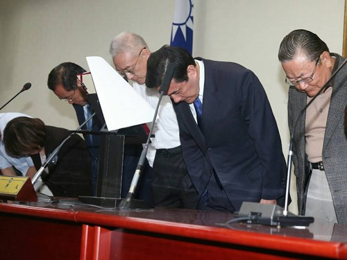 (中央社)身兼中國國民黨主席的總統馬英九今天說,九合一選舉國民黨遭遇極大挫敗,他必須向所有黨員、支持者表示歉意。此刻他的責任是儘快提出改革方案,回應人民訴求,不會迴避責任。九合一選舉開票結果,國民黨遭嚴重挫敗,6都中僅保住新北市政權。馬總統晚間9時許在國民黨中央黨部舉行記者會表示,九合一選舉結果,國民黨遭遇極大挫敗,「我必須向所有黨員、支持者表示歉意」。行政院長江宜樺跟國民黨秘書長曾永權請辭,他已經同意。馬總統說,此刻他的責任是儘快提出改革方案,回應人民訴求。不會迴避任何責任。記者會最後,馬總統並以深深一鞠躬表達對支持者的歉意。