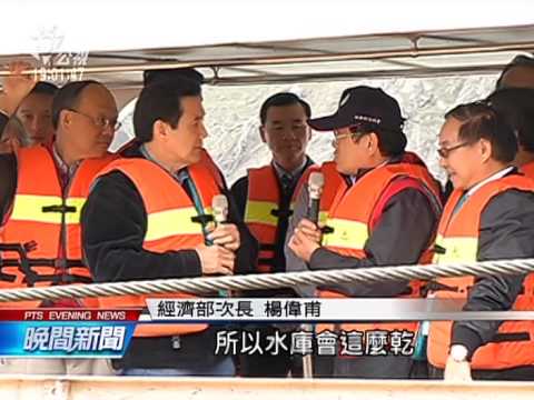 (公視新聞)秋冬降雨創歷史新低,供應北部地區用水的石門水庫,蓄水率降到3成以下,水位也打破歷史新低,馬總統今天到石門水庫視察後,裁示經濟部提出計畫,邀請地方首長,前來了解缺水的情況,如果旱象沒有改善,5月底有可能進入第三階段限水。水情吃緊,短短三天內,總統馬英九和行政院長毛治國,相繼視察桃園石門水庫,7號馬總統更親自登船巡查水庫水情狀況。由於春雨情況不佳,石門水庫的蓄水率只剩1/4,馬總統在船上,也不時提問,了解缺水情況。