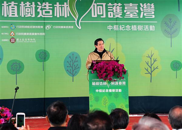(中華民國總統府)12日是植樹節,馬英九總統上午前往國立故宮博物院南部院區出席「植樹造林 呵護臺灣」民國104年中樞紀念植樹活動,除親自種下象徵吉祥的福木,並說明我國近年來推動綠色造林之成效,也期許故宮南院早日成為南部地區亮麗的地標。總統應邀致詞表示,國父曾經說過「造林是民生建設重要項目」,因此當年即大力推廣造林,而國立故宮博物院甫成立時,曾被命名為「中山博物院」以紀念國父,今日適逢國父逝世90週年紀念日,他能前來故宮南院參加中樞紀念植樹活動,深感意義重大。總統指出,儒家思想向來重視植樹造林,例如《禮記》「孟春之月,盛德在木」,說明春天植樹,有其自然與人文意義;而《孟子‧梁惠王》也提到:「斧斤以時入山林,材木不可勝用也。穀與魚鱉不可勝食,材木不可勝用,是使民養生喪死無憾也。養生喪死無憾,王道之始也」,亦說明我們祖先早在2,000多年前即具備生態保育的觀念,智慧值得後人學習與師法。談及政府推動綠色造林的成效,總統表示,「亞太經濟合作會議」(APEC)在2007年時,就決議各會員體在2020年前,總計應增加2,000萬公頃的森林;依國土面積所占比例來換算,我國應增加的造林面積為1萬1,550公頃。總統說明,他在首次競選總統時所提出的「愛臺12建設」,即將「綠色造林」列為政府重要施政項目。從民國97年至今,政府一共投入新臺幣200億元經費,一方面積極造林,同時獎勵個人及企業參與,七年來全國造林面積累計達2萬8,457公頃,已大幅超越了APEC所訂標準的二倍半之多。總統進一步說明,依據農委會去(103)年完成的第4次森林資源調查結果,目前全國森林面積約218.6萬公頃,森林覆蓋率為60.92%,相較於上一次民國84年所做的調查,森林面積共增加了8萬多公頃,森林覆蓋率也增加了2.4%,在世界上196個國家的排名,亦從去年的第26上升到第23名。提及故宮南院核定初期遭遇履約爭議及工程延宕等困難,總統強調,他上任後,政府努力解決各項問題,加速故宮南院工程進度,迄已完成70%,預計在今年12月28日試營運。總統除對工作團隊表示肯定,也期許中央與地方同心協力,讓此座國際級的亞洲藝術文化博物館能早日與國人見面。總統指出,文化建設也需要南北平衡,爰希望未來在故宮南院周邊環境整頓、交通接駁以及觀光旅遊的整合行銷上,行政院能協助規劃,為國人創造結合人文藝術與運動休閒的優質環境,讓故宮南院成為南部地區亮麗的地標。隨後,總統在國立故宮博物院院長馮明珠等人陪同下,步行前往院區東南側藝術之丘,親自種下象徵吉祥的福木,並於專用植樹鏟上簽名留念,也在稍後繞行院區,瞭解主體建築物、景觀工程之規畫及施工進度等情形。包括司法院院長賴浩敏、監察院院長張博雅、行政院副院長張善政、總統府副秘書長熊光華、嘉義縣縣長張花冠、農委會副主任委員沙志一及林務局副局長楊宏志等人均陪同出席是項活動。