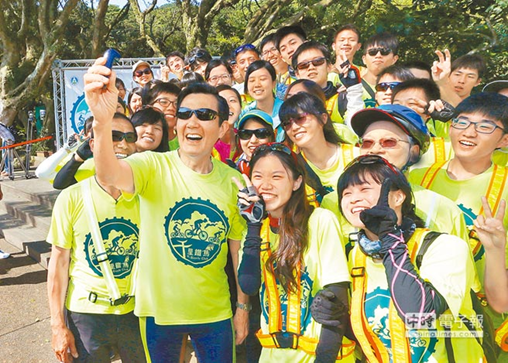 (presidentialoffice)104年5月9日 馬英九總統參加【暢遊臺灣 通行無阻】自行車騎遊趣活動。馬英九總統今(9)日上午出席「暢遊臺灣 通行無阻」自行車騎遊趣活動,帶領千里鐵馬俱樂部成員及青年學子一同騎乘自行車,暢遊「舊草嶺自行車隧道及環狀線」,體驗政府積極建置環島自行車道之成果。總統一早抵達會場,首先與大家一起進行熱身運動,在充滿朝氣與活力的暖身操之後,隨即整裝出發,此行規畫路線約20公里,沿途風景秀麗、陽光和煦,讓大家在運動之餘,亦充分感受臺灣海岸之美。自行車隊伍於上午十時許抵達終點站東北角管理處。總統於現場聽取青年學子進行心得分享,瞭解他們參與自行車活動的過程與人生體驗;甫完成單車環島壯舉的郭韋齊小姐也親至會場,分享她幼時雖因病截肢,行動較不便利,但仍努力完成玉山攻頂與單車環島活動的心路歷程,渠堅強的意志力與行動力讓大家深受感動。總統致詞時表示,他剛開始騎自行車是小學五年級,高中上學的代步工具就是腳踏車,直到在美國留學的時候,即使是下雪結冰日也騎車上學,對自行車的愛好樂此不疲。日前他本來要參加「104年臺灣單車文化騎跡體驗行」雙塔挑戰之旅最後一段27公里的路程,最後因大雨取消,非常可惜,因此今天特別來參加自行車騎遊趣活動。總統指出,國內所謂規律運動(每週至少運動3次、每次30分鐘、每分鐘心跳達130下)人口比例已由他上任前的20%增至去年的33%,已接近先進國家的水準;其中,騎車、跑步與游泳都是非常有益身心的有氧運動,希望國人多多參與,若是年長一些的朋友,快走也是很好的方式。總統說,養成良好的運動習慣是為了自己的健康,尤其可減少心血管疾病的發生,他個人就深受此惠,今年已是他養成長跑習慣的第40年,深刻感受規律運動對身體的幫助。總統指出,他上任之後,政府積極推動建置自行車道,全國自行車道的長度,已從民國96年時的970餘公里,增加到去(103)年的4,486公里。法國有世界聞名的環法自行車賽(Le Tour de France),現在臺灣也已有環臺公路大賽(Tour de Taiwan),政府會繼續推廣,吸引更多人前來體驗臺灣美麗的風景,讓臺灣成為一個「運動島」、「單車島」,「這絕對做得到」。總統談到,8年前他第一次競選總統時,特別騎自行車從鵝鑾鼻到富貴角,因此提出「單車成年禮」的構想,鼓勵年輕學子在16歲時,藉著100公里的單車騎乘,瞭解自己家鄉附近的城鎮;18歲時,延伸挑戰500公里的附近縣市;20歲時則是單車環島,挑戰1,000公里。該活動的參加人數也從第1年的5,000人次,增加到已超過26萬人。總統認為,在騎乘的過程中,「你會重新發現臺灣,臺灣也會重新發現你」,是非常溫馨而有意義的互動,也希望教育部、衛福部可以多多辦理類此活動,持續推廣運動風氣。包括衛福部部長蔣丙煌、教育部次長陳德華、體育署署長何卓飛、交通部次長范植谷、內政部營建署署長許文龍、臺北市立大學校長戴遐齡及總統府副秘書長熊光華等,均陪同總統出席是項活動。