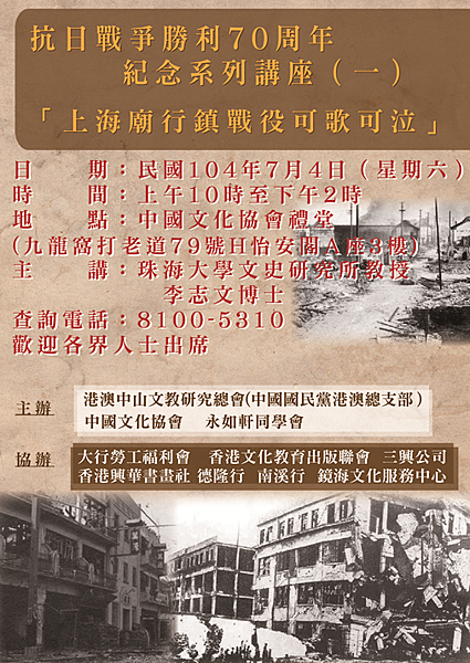 抗日戰爭勝利七十周年紀念系列講座(一)「上海廟行鎮戰役可歌可泣」