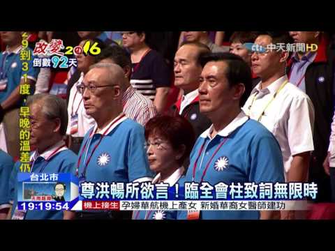 (中天新聞)距離國民黨臨全會已經進入最後倒數時刻,下午工作人員忙著場地布置,照慣例,臨全會前相關重要人士,會到現場彩排,但這回被換掉的洪秀柱,表明不會現身。而黨中央為了「尊洪」,避免對立,原本擬定馬總統前主席連戰、吳伯雄以及朱立倫,都是致詞10分鐘,唯獨洪秀柱沒有限制時間,讓她暢所欲言,若萬一現場無法拍手一致通過換柱案,國民黨也已經準備好票匭,到時將會投票表決換柱。
