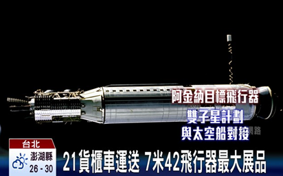 (TTV NEWS台視新聞台)美國太空總署NASA統籌舉辦特展,準備來到中華民國台灣!超過300件展品,曾經飛上外太空執行任務的設備,這回原封不動的展出,要讓民眾彷彿置身外太空。展覽5/28才登場,現在,主辦單位已經緊鑼密鼓的進駐台北市士林科教館,用了21個超大貨櫃車裝卸,有哪些重量級航太設備?馬上帶您搶先看。一個個木箱,小心翼翼運送下車,300件曾經飛上外太空,執行任務的設備,原封不動,來台展出!要怎麼卸出貨櫃,都得仔細思量,小心保護,為的就是這個長達7米42的飛行器,也是這次最大的展品。這個 阿金納目標飛行器,在雙子星計劃中,扮演重要角色,當太空船要和登月小艇對接前,就得先和阿金納練習對接。吸睛的還有這個。泰坦1號火箭引擎,用來發射太空船,2.5噸的重量,推力強,穩定性也高。這些重量級航太設備,這回全部空運來台,太空艙、火箭、太空裝,統統一塊兒展出,連太空人,怎麼生活的?也要帶您一探究竟。揭開航太神秘面紗,上百件展品,彷彿置身外太空,在台灣,就能來場外太空探險之旅。