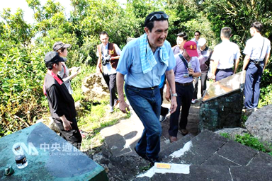 (中央社/中華民國總統府提供)總統馬英九今天上午前往龜山島,了解登山步道相關安全設施整修情況,也慰勉駐島人員辛勞,這是馬總統首次登上龜山島。馬總統上午8時於宜蘭縣烏石港搭船前往龜山島,抵龜山島後先到普陀巖祈福參拜,再視察401高地周邊設施,並到龜山島安檢所慰勉龜山島行政院海岸巡防署幹部。馬總統中午返回烏石港碼頭後,將在位於宜蘭縣頭城鎮的海巡署北部地區岸巡局第一二岸巡大隊餐廳,與海巡署人員餐敘,致贈加菜金。馬總統過去曾規劃登龜山島,但天候、海象等因素未能成行。位於頭城外海的龜山島早年軍事管制,一直籠罩神祕面紗,但交通部觀光局在民國89年8月1日開放登島觀光後,由於島上特殊、豐富且原始生態資源,加上附近海域可以賞鯨,成為熱門旅遊景點。