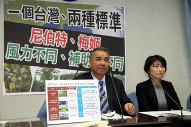 (UPolicy KMT)國民黨黨團總召集人廖國棟、台東縣議會議長饒慶鈴及鄉親(10/4)上午9點30分於黨團記者室召開「一個台灣、兩種標準 尼伯特、梅姬,風力不同、補助也不同」記者會,敬邀採訪,謝謝!