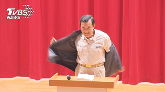 (TVBS NEWS)中華民國前總統馬英九:「讓我寬寬衣服好不好?我保證,你放心我保證只脫一件!」招牌馬氏冷笑話,也能逗得全場哈哈大笑,馬英九對著比自己年輕50歲的學弟們,大談從建國中學到中華民國。前總統馬英九:「各位不要誤會,我從來沒有從小就要做總統的願望,很多人怪我說都是我選勝台北市長陳總統,才跑去選總統。」不等學生問,馬英九主動提起打敗陳水扁當年勇!至於陳水扁日前公開感謝馬總統讓他重拾親情,馬英九說「保外就醫是依法行政,不是他個人恩惠」。建中學生:「請問馬總統你對兩岸關係的看法?」前總統馬英九:「到我卸任為止,是兩岸關係最和平穩定的時候,很可惜當然這情況現在不一樣了。」建中學生:「你執政的方向,有和當初參選總統心裡的想法一致嗎?」前總統馬英九:「有,完全一致,我知道你的意思啦!問我有沒有髮夾彎是不是?」馬英九有問必答,建中學生不只拍照紀念,連國旗都帶進來當道具。建中學生:「第一個,我們可以握個手嗎?」前總統馬英九:「可以!」老馬哥魅力不減,畢業將近50年,馬英九為了這次校園演講,特地翻出當年的高中制服,學長對學弟有問有答,校園人氣再加溫。