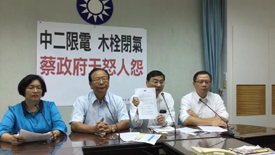 中國國民黨立法院黨團「中二限電 木栓閉氣 蔡政府天怒人怨」記者會
