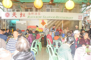 午膳餐單:白灼海生蝦、馳名海鮮湯、清蒸游水海鮮、香草牛油青口、蒜茸蒸元貝、油鹽水浸蜆、得獎咕嚕肉、郊外靚油菜、天虹炒飯、干燒伊麵(12人1席,菜單只供參考,食品以當天供應為準)